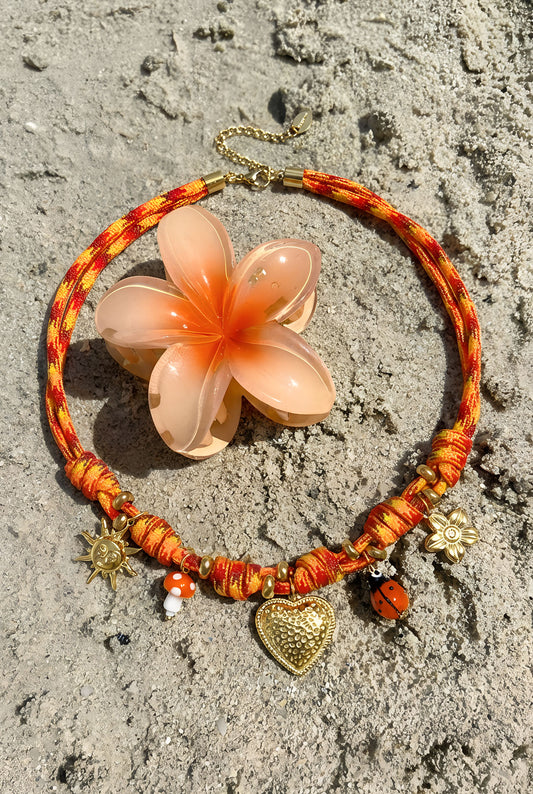Necklace with sun and heart charms