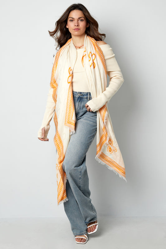 Striking scarf with prints and text